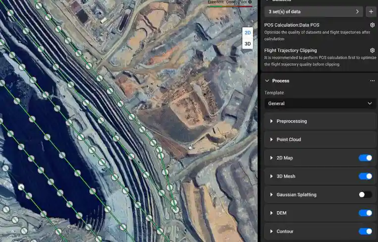 DJI Terra tích hợp sẵn công nghệ PPK (Post-Processed Kinematic) mạnh mẽ, tương thích linh hoạt với D-RTK 3 và dữ liệu từ các trạm gốc tiêu chuẩn. Nền tảng cho phép xử lý PPK cục bộ cho cả dữ liệu RGB và LiDAR, mang lại độ chính xác định vị ở mức centimet ngay cả trong điều kiện không có kết nối mạng hoặc khi RTK không khả dụng