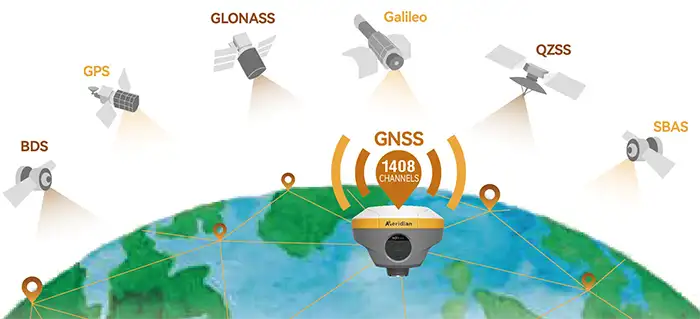 Máy GPS RTK Meridian M20Lite kết nối đầy đủ đa hệ vệ tinh (BDS, GPS, GLONASS, Galileo, QZSS, SBAS) cùng 1408 kênh theo dõi, giúp bắt tín hiệu nhanh, ổn định và đảm bảo độ chính xác cao trong mọi điều kiện làm việc.