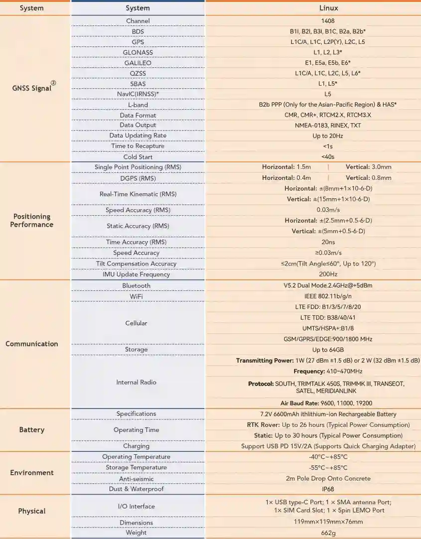 | Định dạng dữ liệu | CMR, CMR+, RTCM2.X, RTCM3.X | |