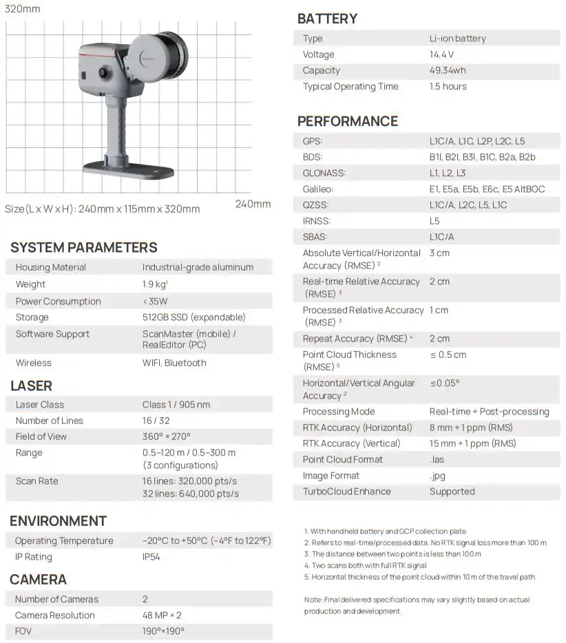 | Tổng quan | Loại thiết bị | Máy quét 3D cầm tay (SLAM LiDAR) |